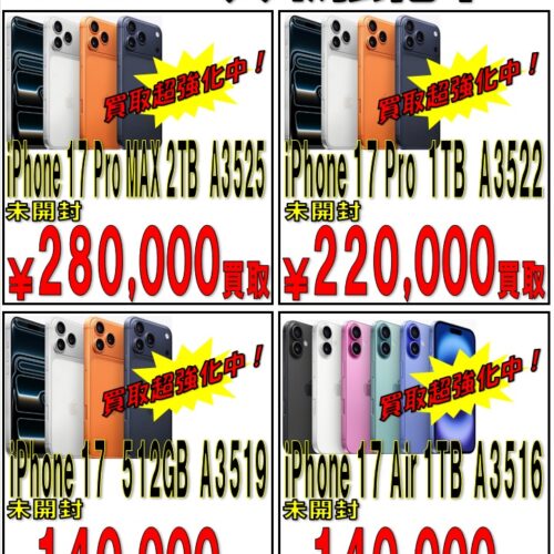 iPhone17&Air 集めてます! 未開封から中古品まで高価買取中!!