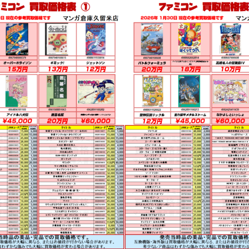 『ファミリーコンピュータ』買取価格表①~② ファミコン買取強化中!