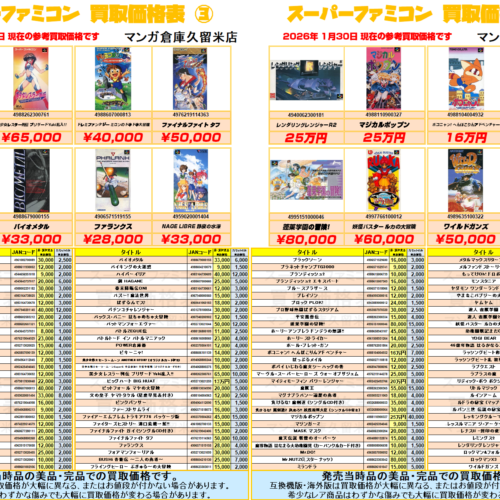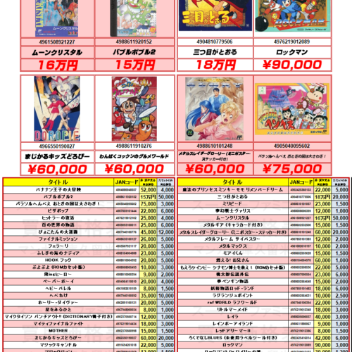 『ファミリーコンピュータ』買取価格表③ ファミコン地域一番買取強化中!