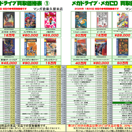 『メガドライブ』『メガCD』買取価格表①~②! 時代が求めた買取価格!