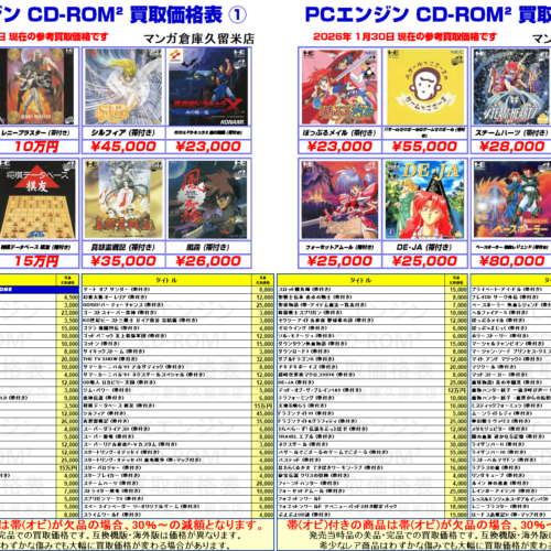 『PCエンジン CD-ROM²』買取価格表①~② マンガ倉庫の買取価格表を覗いてみるか?