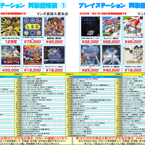 『プレイステーション』買取価格表①~②! 全てのレトロゲームはマンガ倉庫に集まる。