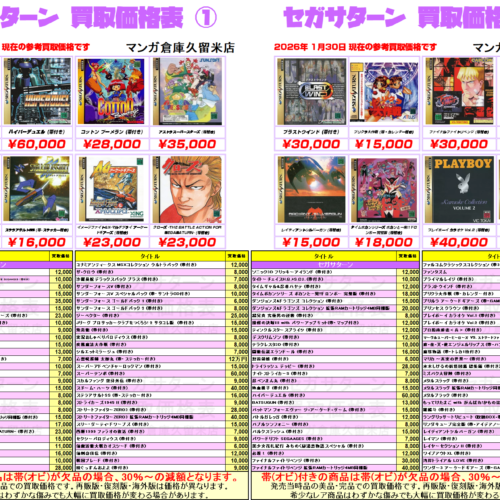 『セガサターン』脳天直撃買取価格表①~② セガサターン、シロ! 指が折れるまで!指が折れるまで!