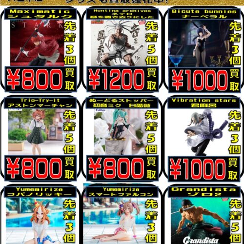 【1月】期間限定で査定額3000円以上のスケールフィギュアが金額UP!この機会にぜひ久留米店へ!!【6日更新】