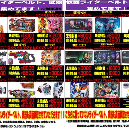 【4月】話題の仮面ライダーベルト、武器集めてます!久留米店へぜひお持ちください!!【2日更新】