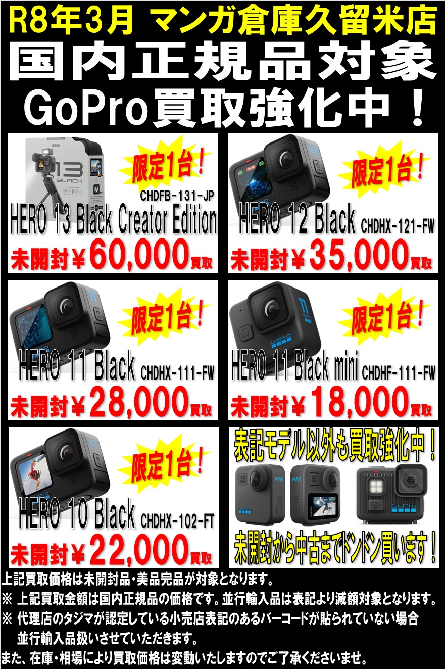 GoPro HERO シリーズ買取強化中!! 限定1台までの高価買取!!