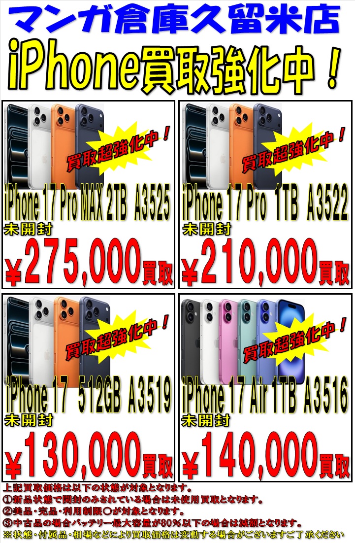 iPhone17&Air 集めてます! 未開封から中古品まで高価買取中!!