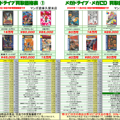 『メガドライブ』『メガCD』買取価格表①~②! 時代が求めた買取価格!