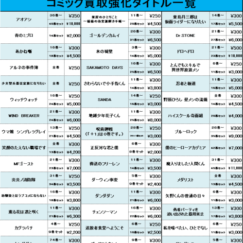 人気コミック買取強化中!① アニメ化ドラマ化作品ぜひお売りください!