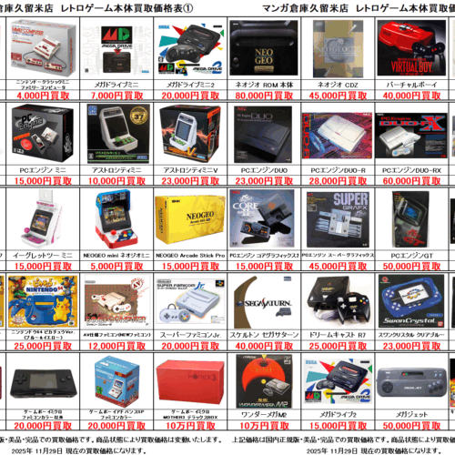 ファミコンミニから昭和レトロゲーム機、当時物のゲーム機買い取ります!レトロハード買取価格表!