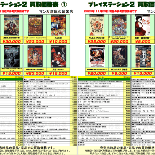 『プレイステーション2』買取価格表①~② 全てのレトロゲームソフト・ゲーム機はマンガ倉庫に集まる。