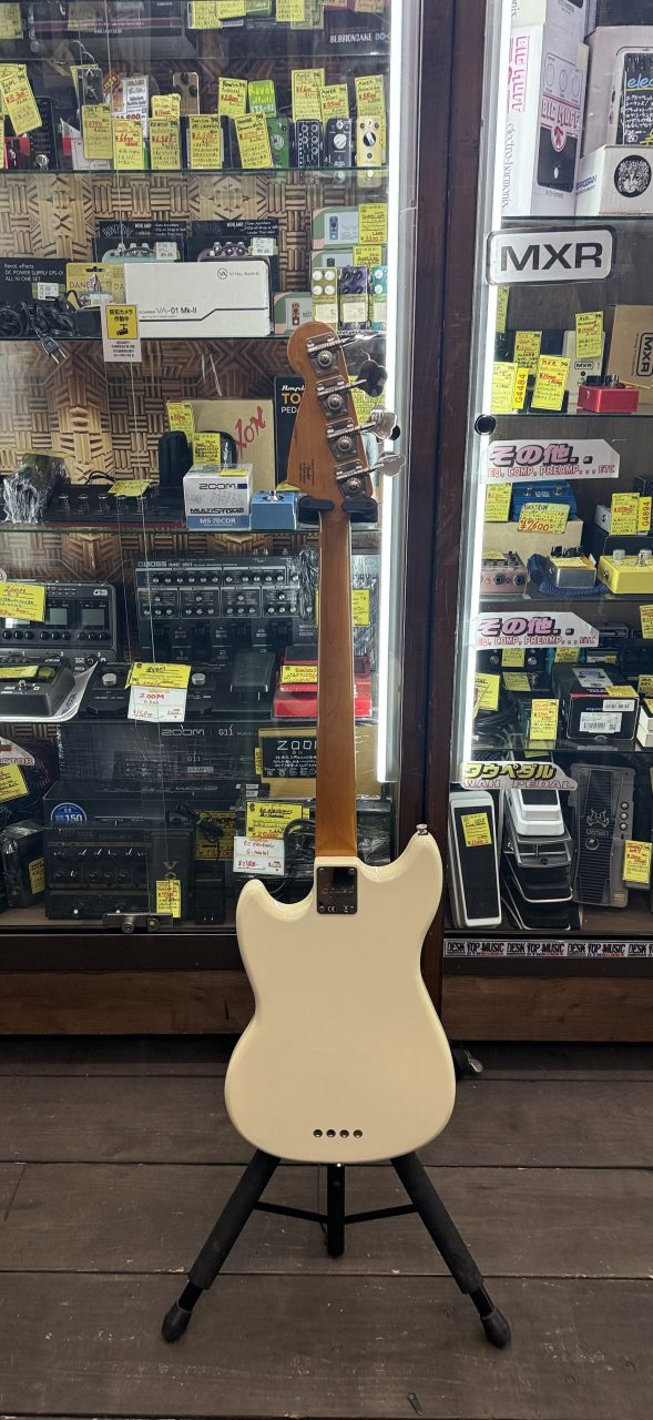 ナトーボディ/メイプルネックCシェイプネック/インディアンローレル指板を採用。ヘッドやネックは60年代のムスタングベースにインスパイアされた仕様となっており、本格的なムスタングベースのプレイアビリティーを楽しめます。ヴィンテージスタイルのペグやボディカラーなど本家にも引けを取らない一本である