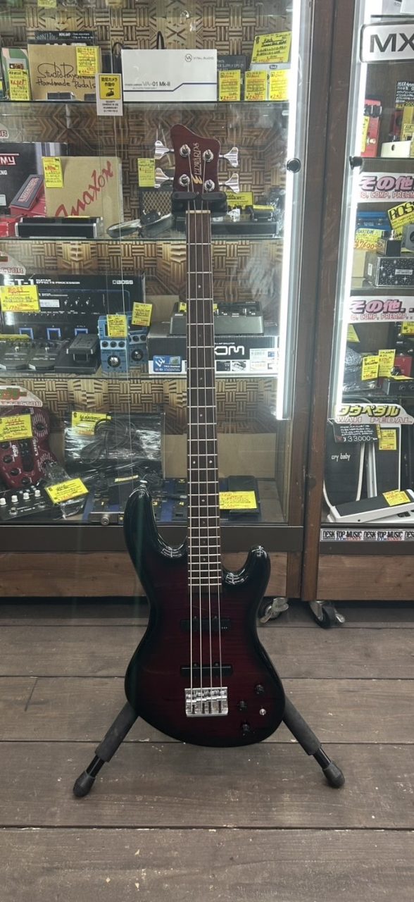 ”SIAM SHAD”のベーシストNATIN氏のシグネチャーモデル。ボディにフレイムメイプルトップ/アルダーバック、指板にローズウッド、ネックにメイプル材(ロングスケール)。P.UにESPオリジナル(フロント)/P.Duce(リア)に搭載。Warwick,Spectorを彷彿指せるボディシェイプにフィギュアードメイプルが両面に貼られたゴージャスな仕様。コントロールに2VOL.マスタートーン、トーンスルースイッチの仕様で、本人のこだわりが備わった一本になっとります。