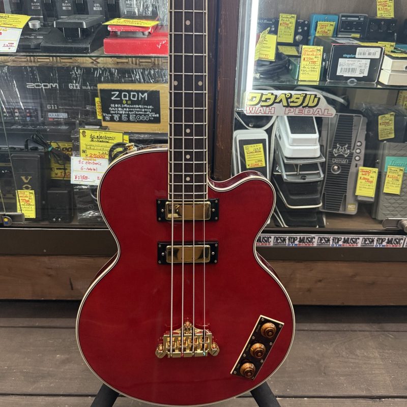 チェンバード加工のマホガニーボディ、セミアコベースの様な鳴り感、P.Uはオリジナルのミニバッカーをフロント&センター位置に搭載ウォームかつ丸目のトーンフィットなサウンドが特徴です