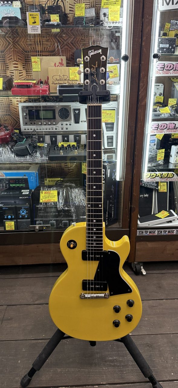 鮮やかなイエローが印象的なレスポール・スペシャル。60年以上数多くのギタリストにプレイされてきた、名機!!50年代スタイルの肉厚なネックシェイプ、ラップアラウンド・ブリッジなどクラシックな仕様です。オリジナルのP-90ならではの中音域の温かいトーンは、歪みとの相性も良くバッキング/リード共にバランスが取れる印象です。