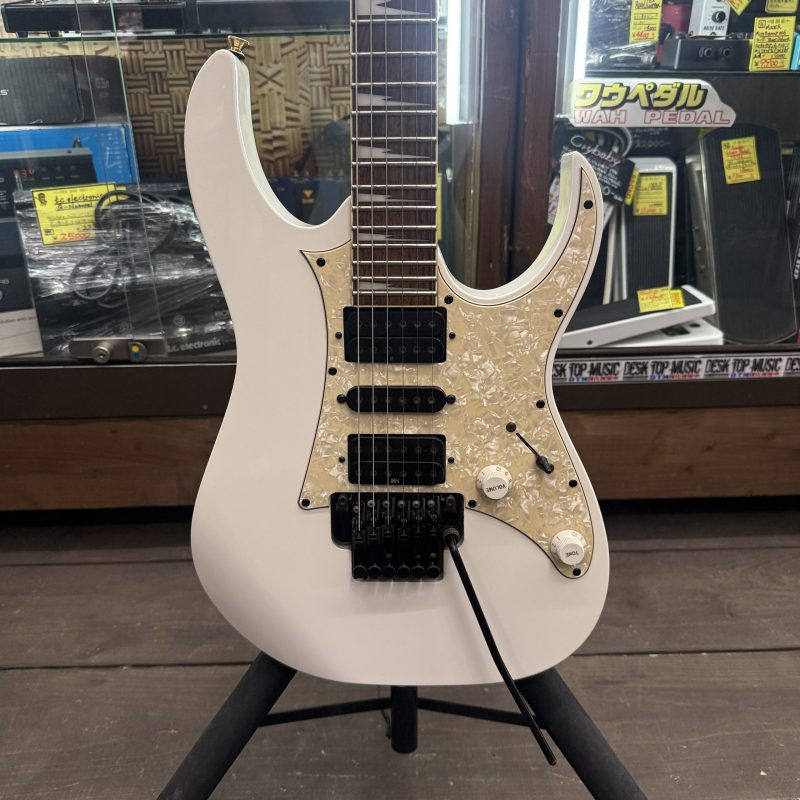 Ibanezの代名詞”RG”。当モデルは2012年のインドネシア製、ボディ材やネックの構造など現行品あよりこだった仕様です。また激しいアーミングを実現するオリジナルブリッジにゼロポイントシステムを搭載、大手P.Uメーカーにも劣らないオリジナルP.Uhaファンに嬉しい装備です。