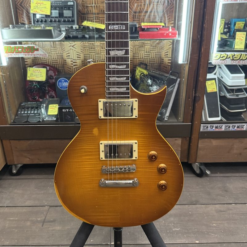 ESPの海外向けブランドLTD。当モデルはフレイムメイプルマホガニー/3pcマホガニーネック/ジャトバ指板を採用。軽くて扱いやすい仕様となっております。P.UにはESPの”LH-150N(フロント)/150B(リア)を搭載。マイルドなクリーントーンとドライブサウンドといった印象です。トーンコントロールにプル/プッシュのコイルタップ仕様となっています。