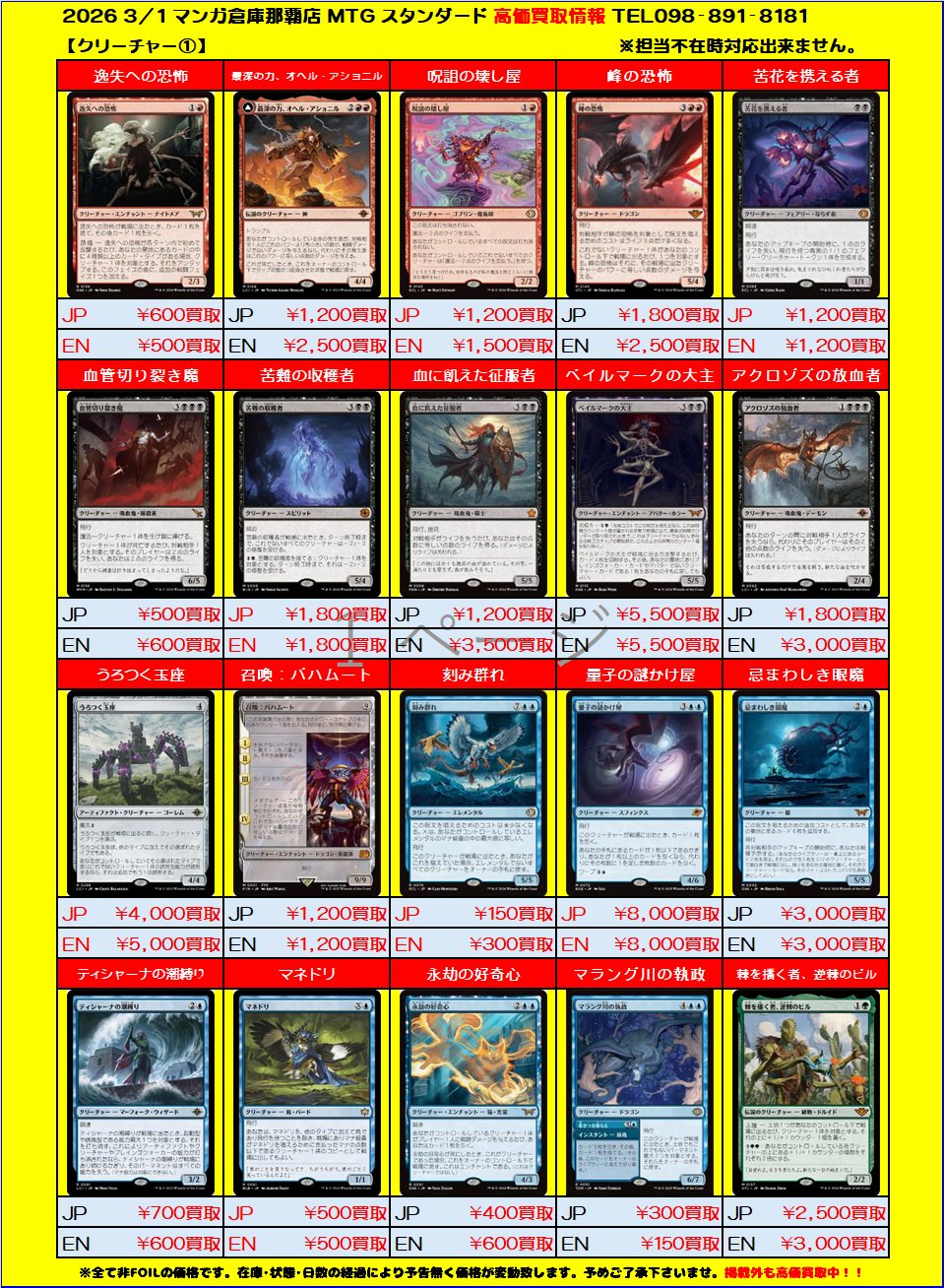【カード】MTG スタンダード 高価買取リスト①
