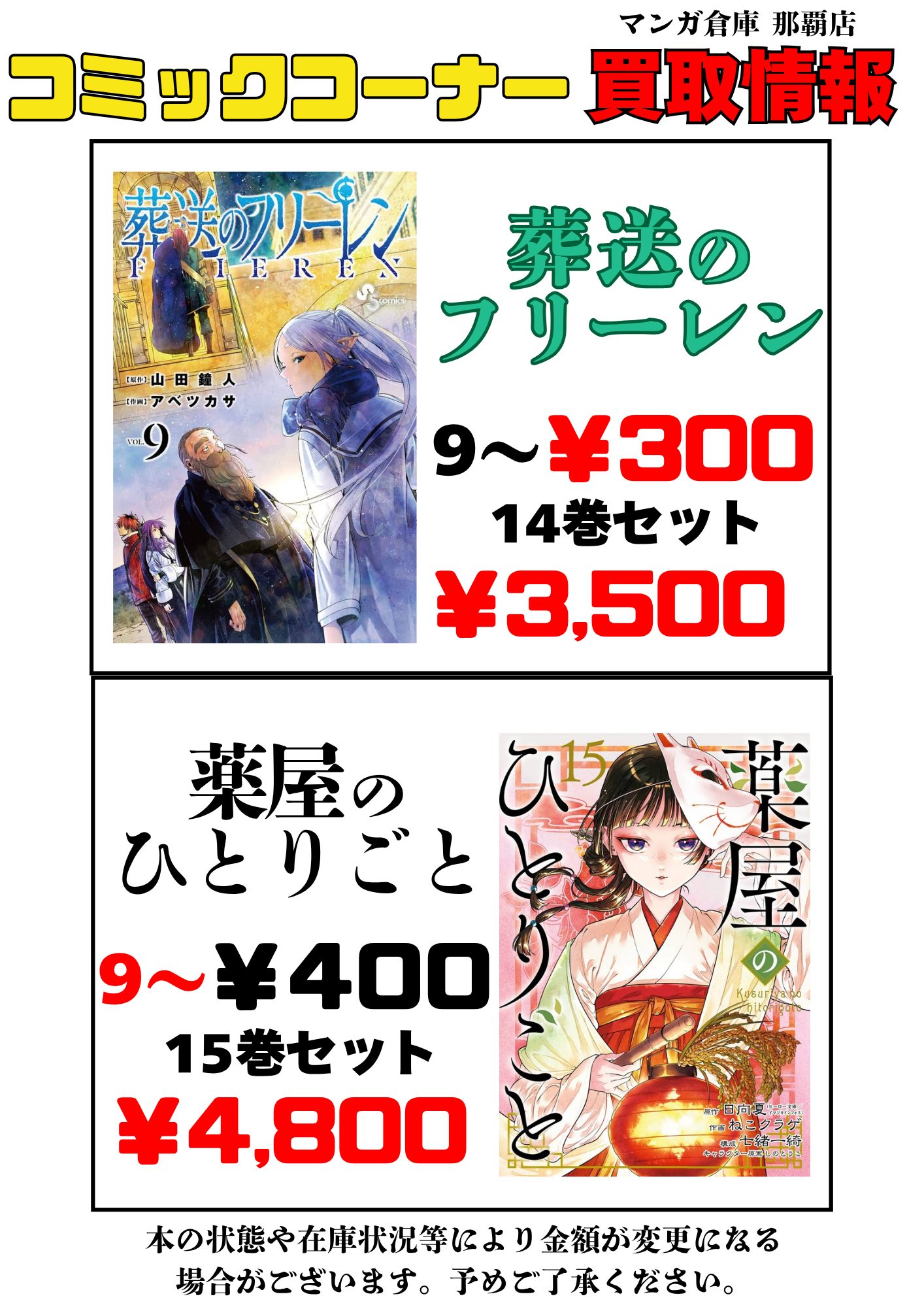 【コミック】薬屋のひとりごと、葬送のフリーレン買取強化中!
