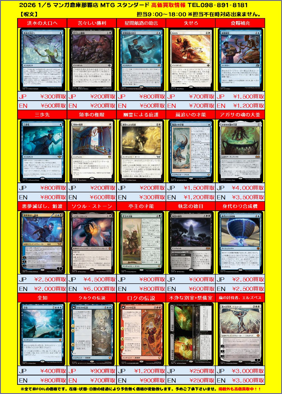 【MTG】マンガ倉庫那覇店 スタンダード 高価買取情報④