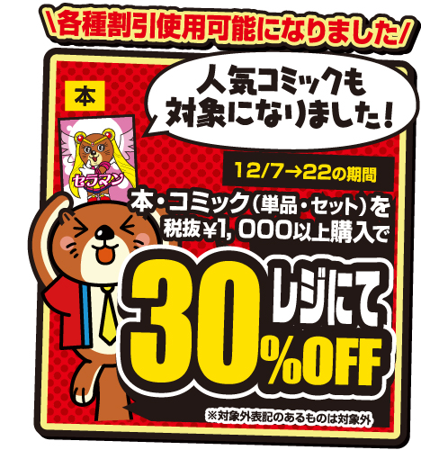 202412.06 本 【本・コミックコーナー】お得情報♪ ※各種割引利用OK!期間中は本・コミックがとてもお得に買えますよ★ ※セール対象外POPの貼ってる商品のみ対象外となります。 セットコミック千円ガチャもS賞増量中!! チラシ期間中はお買い得!!是非マンガ倉庫那覇店へ!!