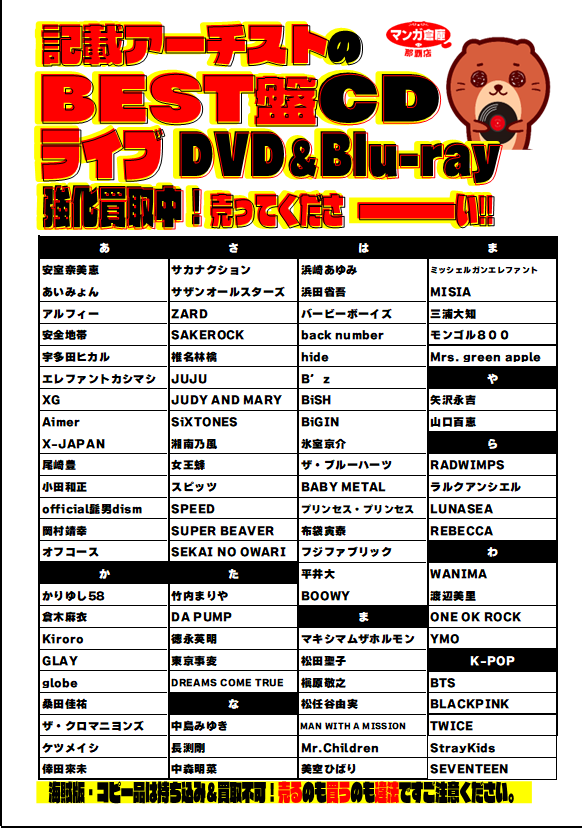 マンガ倉庫那覇店音楽・映像コーナーに是非お越し下さいませ★