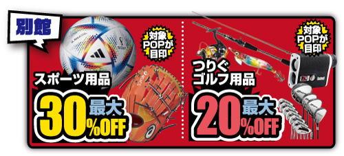 202603.13 新着情報 別館セール! チラシ期間中別館セールをやっちゃいます スポーツ用品最大30%OFF 釣具も最大20%OFF 対象POPが目印なので無くなる前に買っちゃってください。 最新の物もあるので一度見に来てね