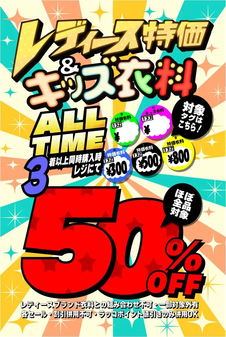 202512.09 ファッション 特価衣料コーナーSALEのお知らせッッ!! 今月もやっちゃいます! マンガ倉庫那覇店の特価衣料コーナーでは、12月6日(月)~12月21日(日)の期間中、特価&キッズ衣料を3着以上同時にご購入いただくとレジにてなんと50%OFFになります!! ※各種割引併用不可・一部SALE対象外商品もありますのでご注意ください。 肌寒い季節にぴったりなお洋服をたくさんご用意してお待ちしております!是非、この機会にお越しくださいませ(^o^)/~