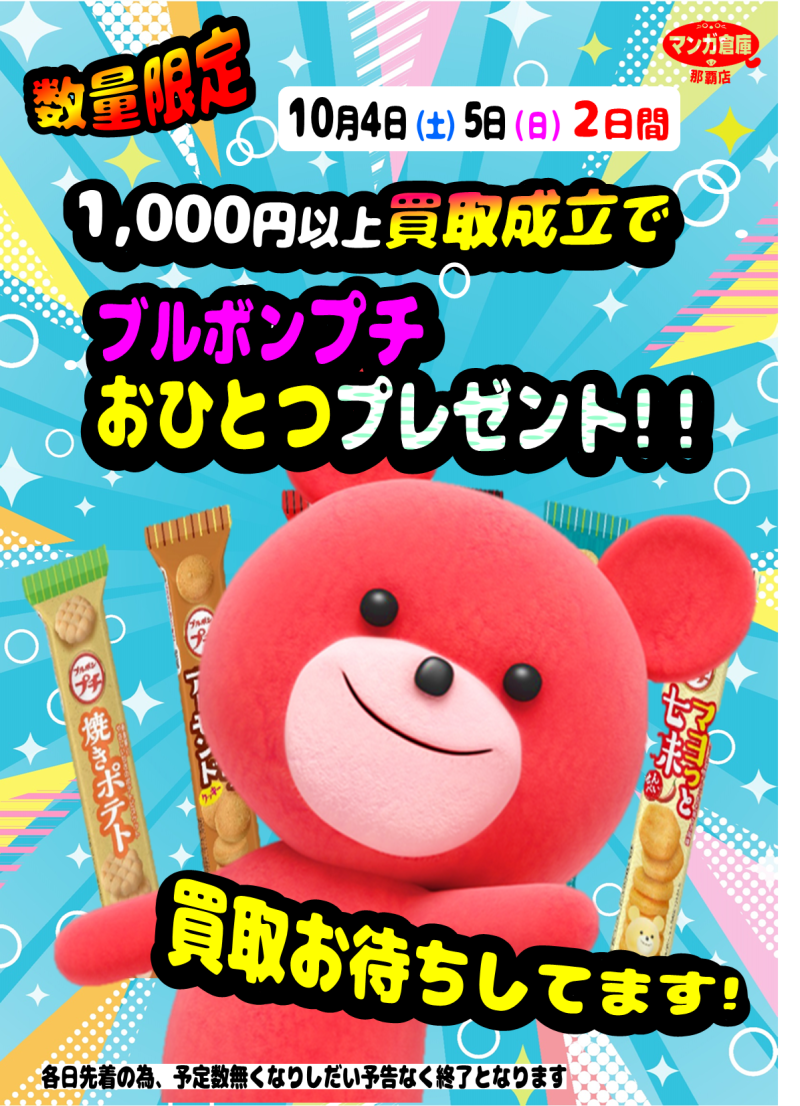 買取成立で!ブルボンプチさしあげちゃいます(先着)