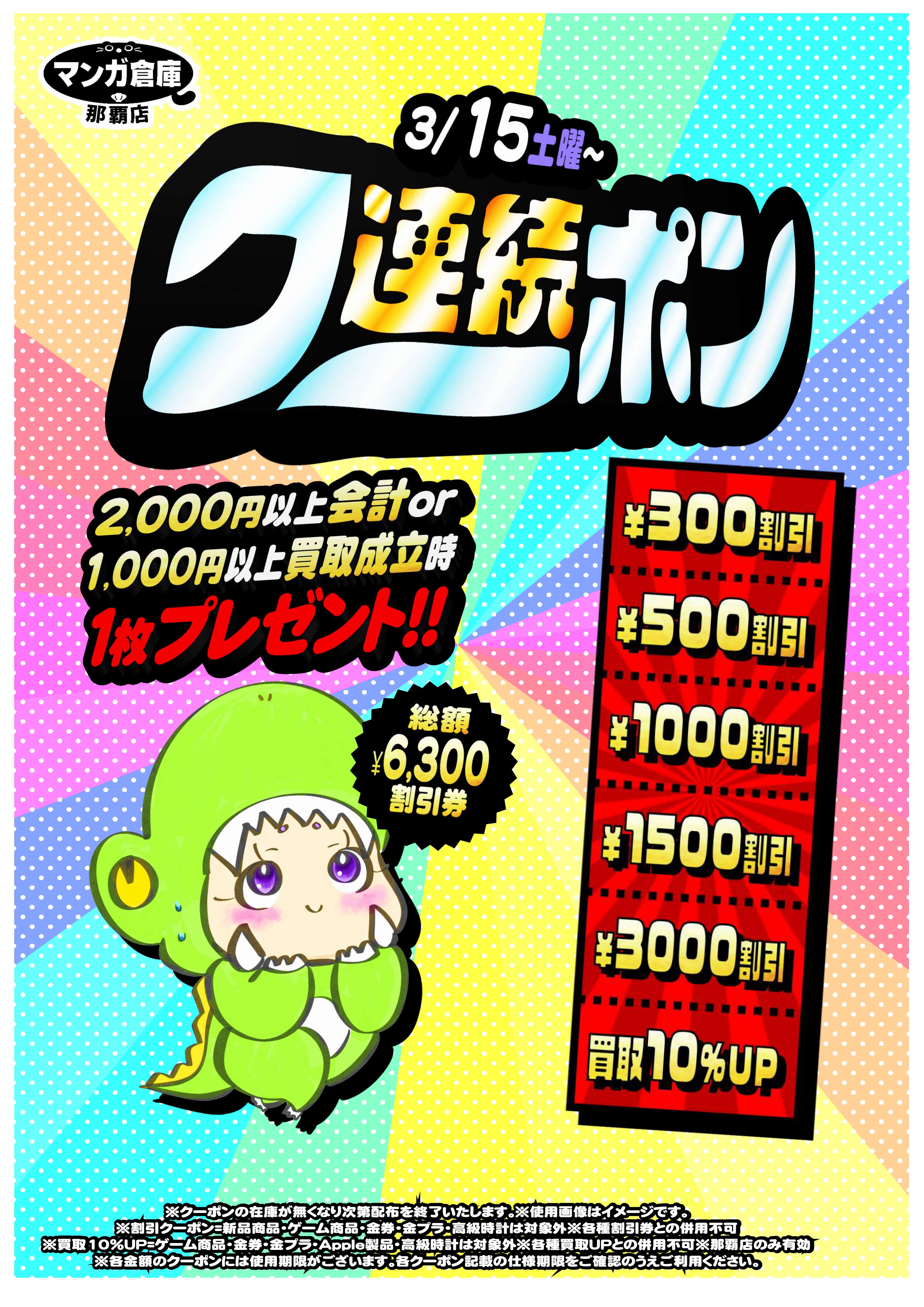 (3/15~)連続クーポン配布☆START(先着無くなり次第終了)