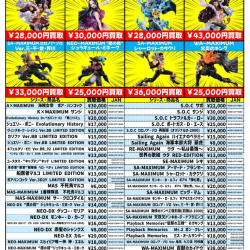 ■ワンピース一番くじMASTERLISEフィギュアなどA賞B賞C賞D賞6点 ルフィ ガープ ルッチ ジャック ニカ 他買取させて頂きました!■