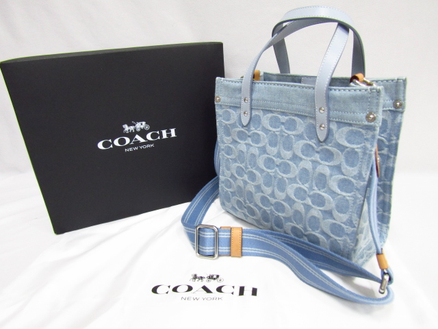 COACH デニムトートバッグ 2way CJ853 ライトブルー フィールドトート シグネチャー ショルダーバッグ買取させて頂きました!!