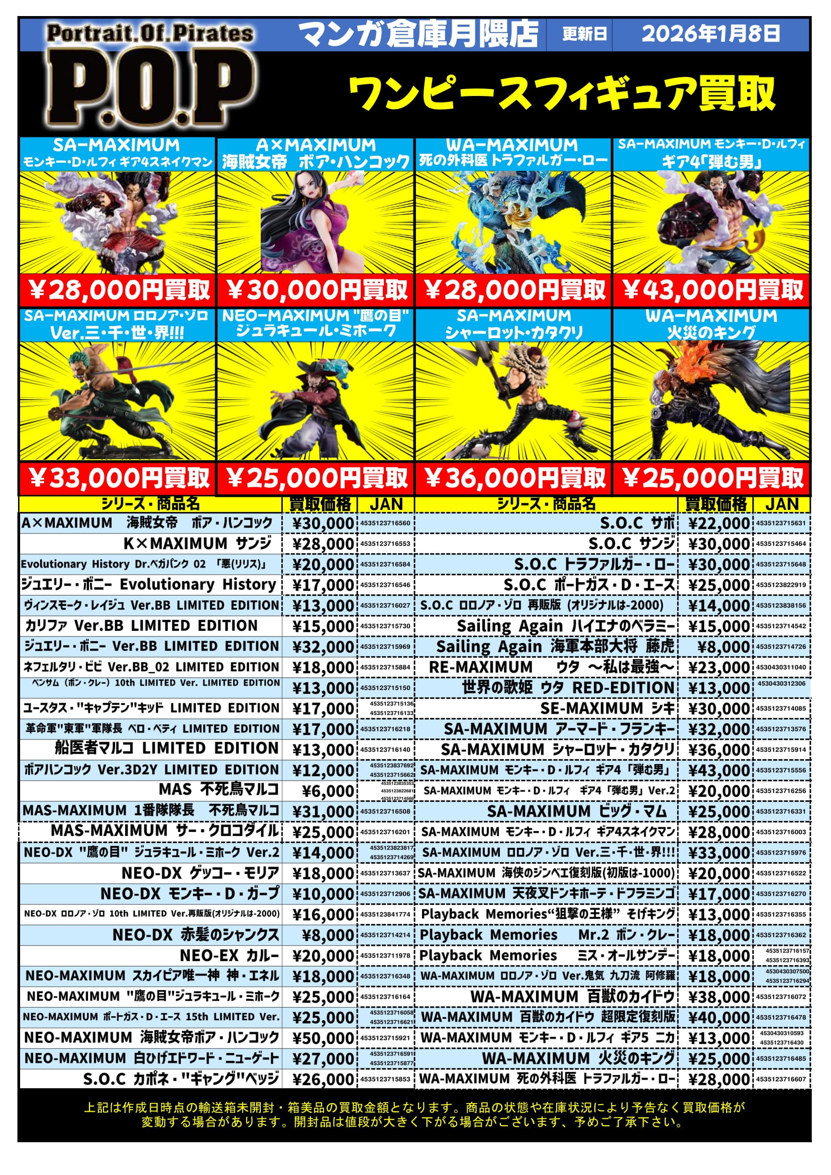 ★ワンピースフィギュアP.O.P買取更新しました!①★