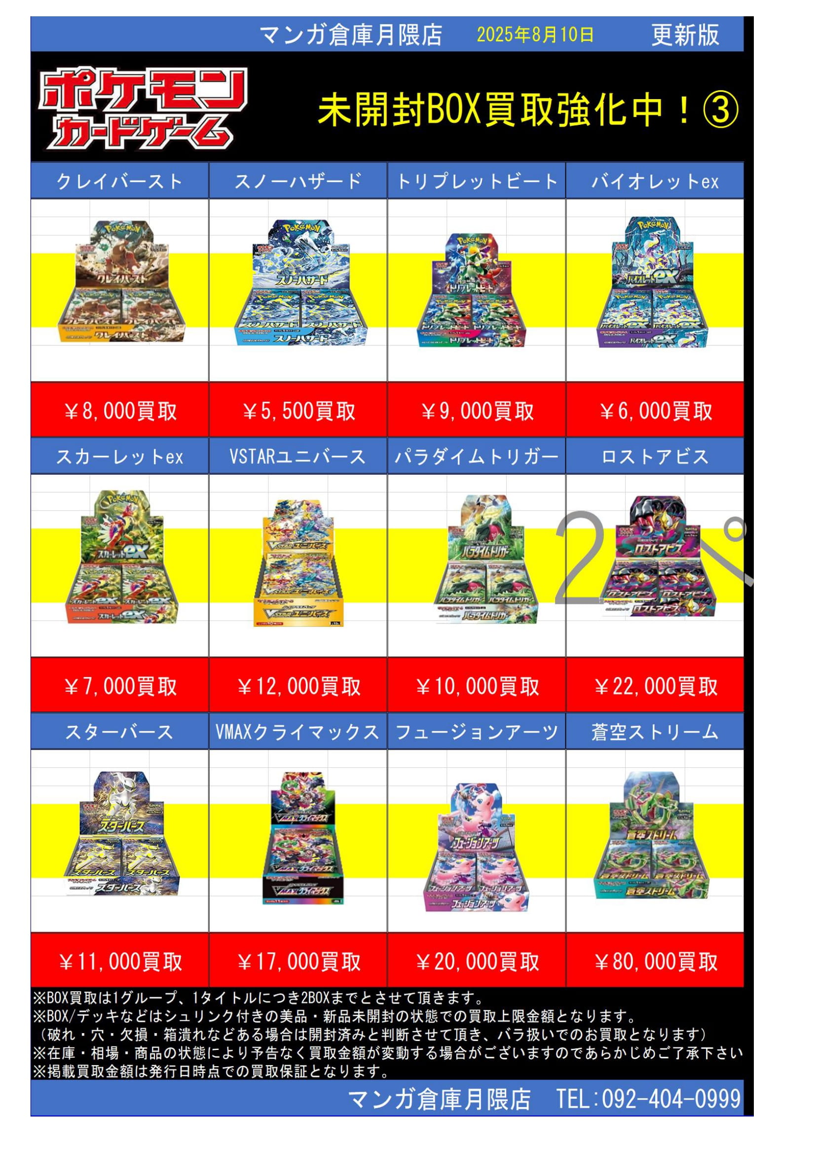 《カードコーナー》ポケカBOX買取金額変更いたしました!③