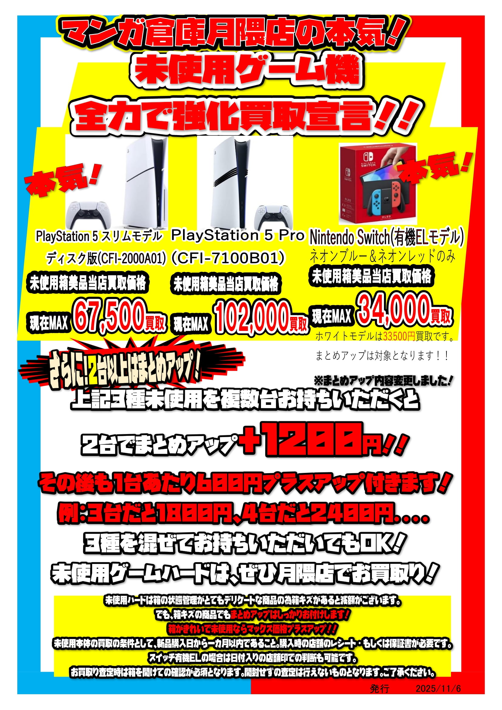ゲームコーナーより、スイッチ・PS5未使用本体高価買取中です!