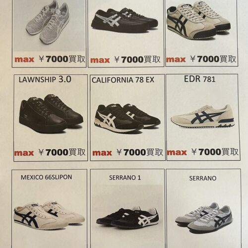 只今靴コーナーではonitsuka tigerのスニーカーを高価買取しております!