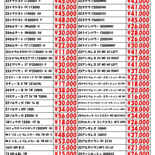 ロッド&リールの買取表更新しました。