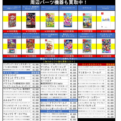 ゲームコーナーより、スイッチソフト、スイッチ・PS5未使用本体買取更新いたしました!