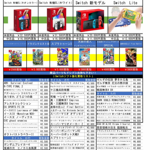 スイッチ有機ELモデル未使用本体買取金額更新いたしました!