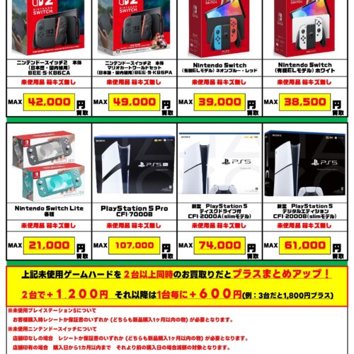 ★ゲームコーナーより、本体買取金額更新いたしました!★