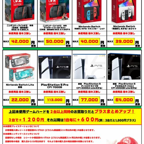 ゲームコーナーより、ゲーム機本体買取金額変更いたしました。
