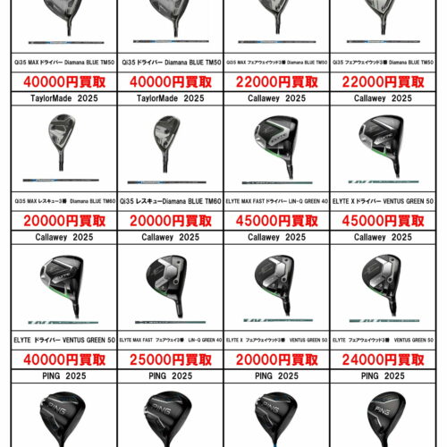 ■ゴルフクラブ買取表 更新しました。①■