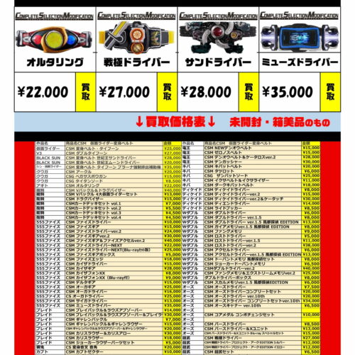 仮面ライダーCSM買取表①