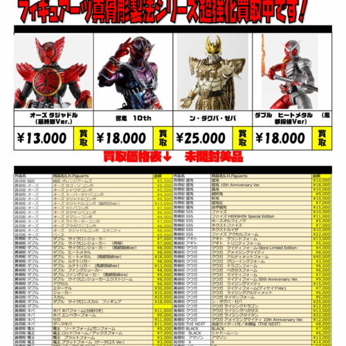 仮面ライダー フィギュアーツ真骨彫 買取価格更新しました!①