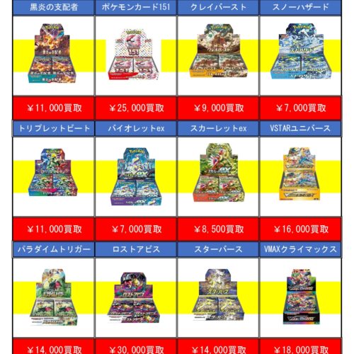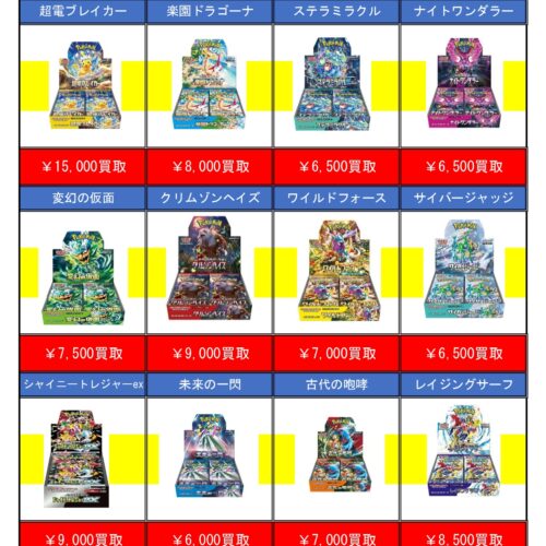カードコーナーより、ポケカBOX買取金額変更いたしました!