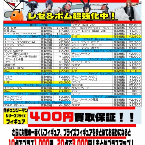 チェンソーマンフィギュア、ジョジョフィギュア買取更新しました!