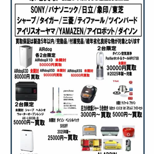 生活家電高価買取中①