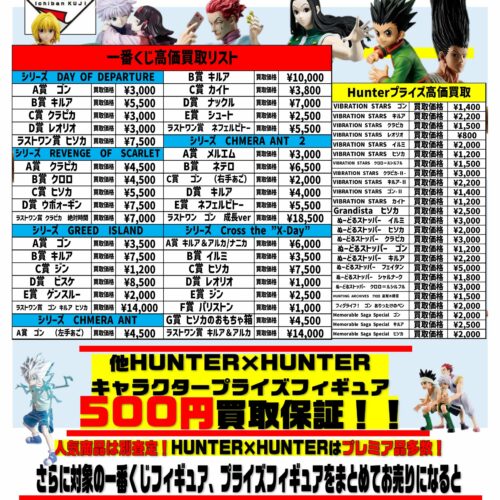 ハンター×ハンター、ナルト、呪術廻戦フィギュア買取更新しました!
