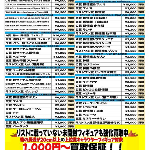 ドラゴンボールプライズフィギュア買取更新しました!