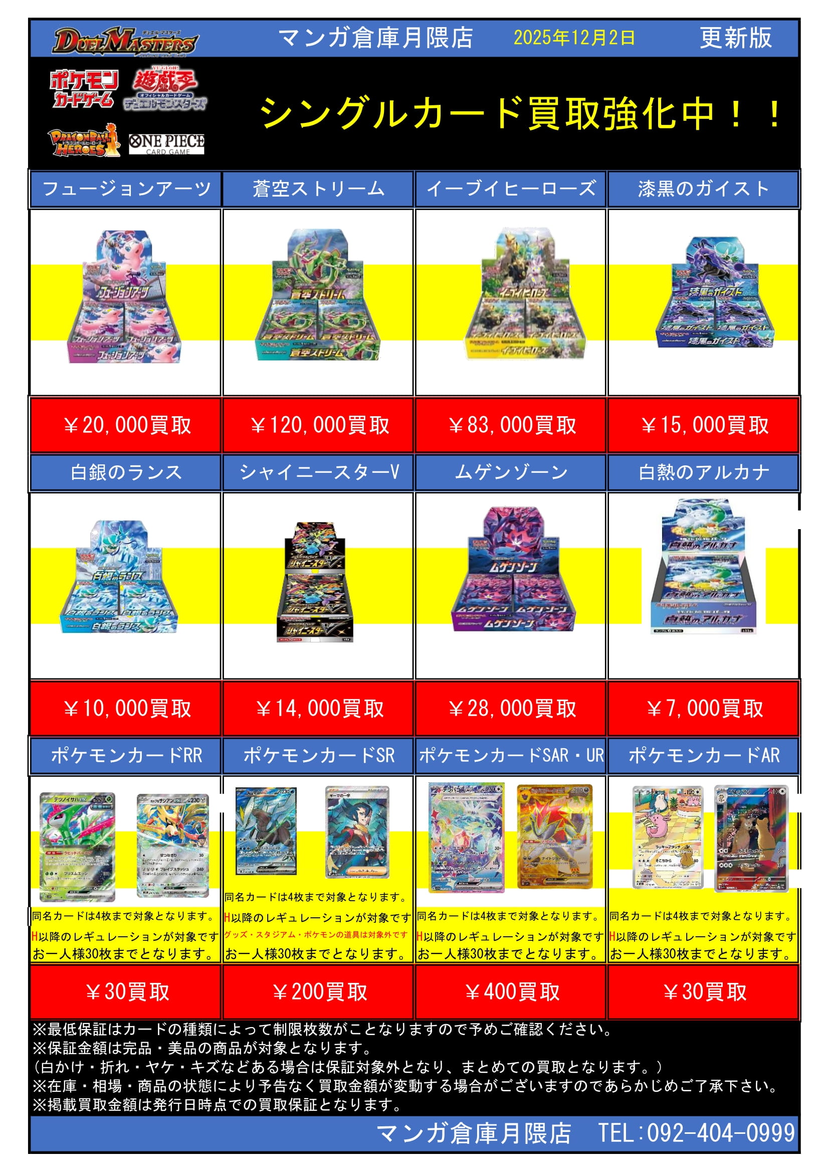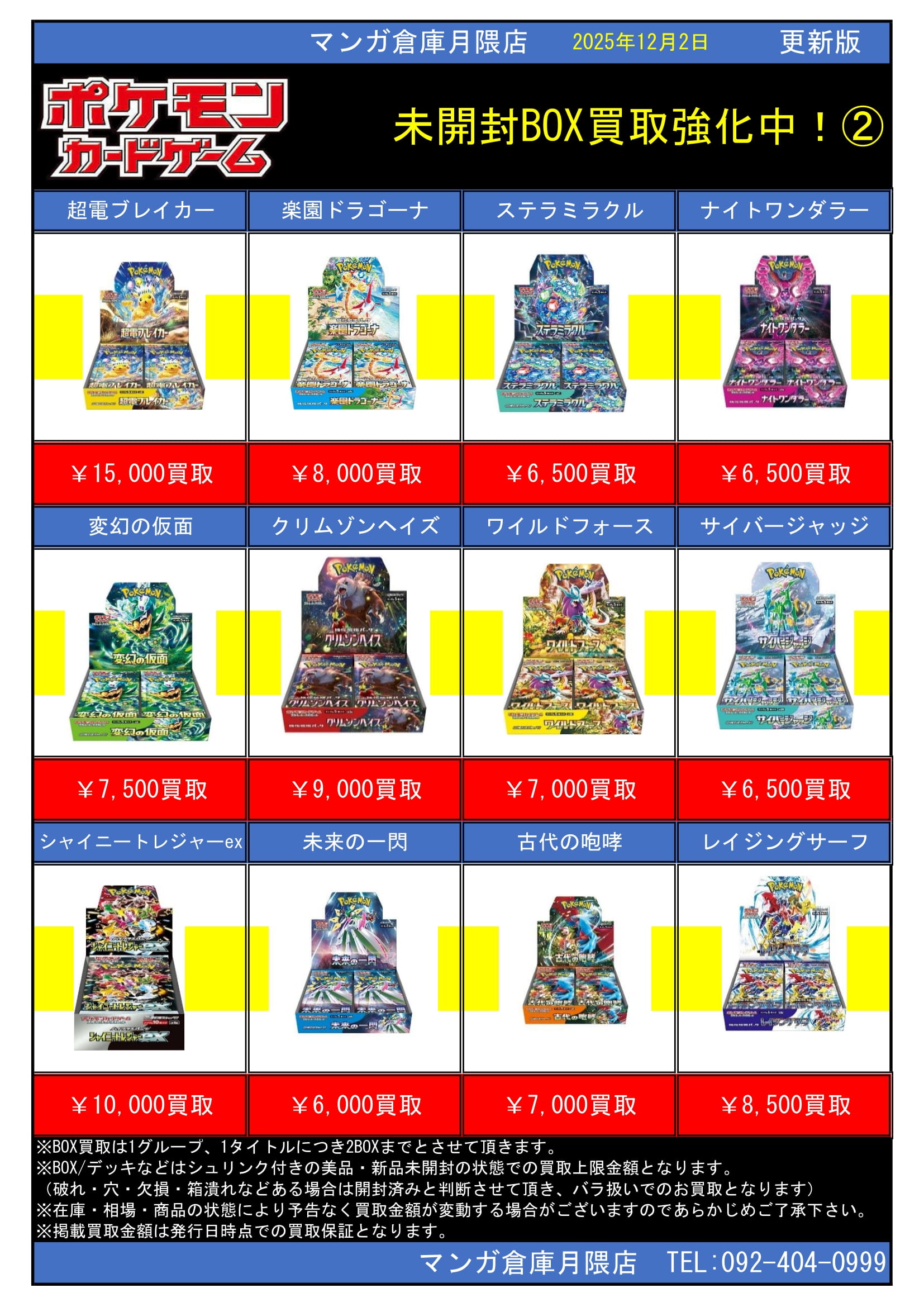 ★カードコーナーより、ポケカBOX・シングル買取金額変更いたしました!★